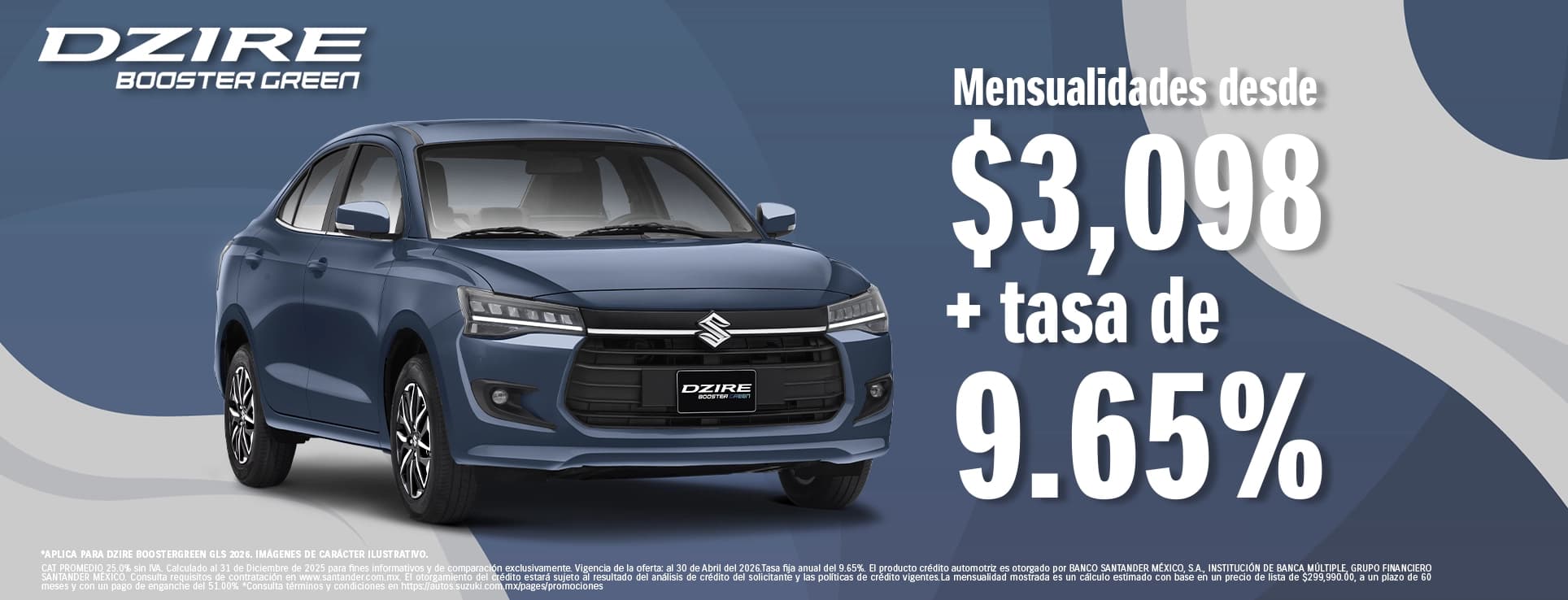 Hazlo posible con DZIRE BOOSTERGREEN desde $3,098 al mes y tasa desde 9.65%. Un equilibrio perfecto entre eficiencia, confort y estilo para avanzar todos los días.