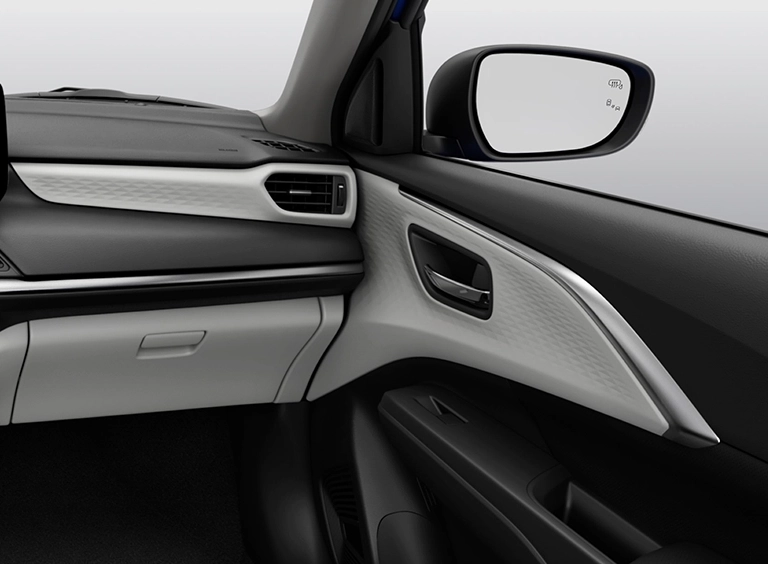 Incorporamos elementos de adorno color gris claro con diseño texturizado 3D de precisión. Se aplican revestimientos satinados y pintura plateada oscura satinada para crear un aspecto deportivo y de alta calidad.