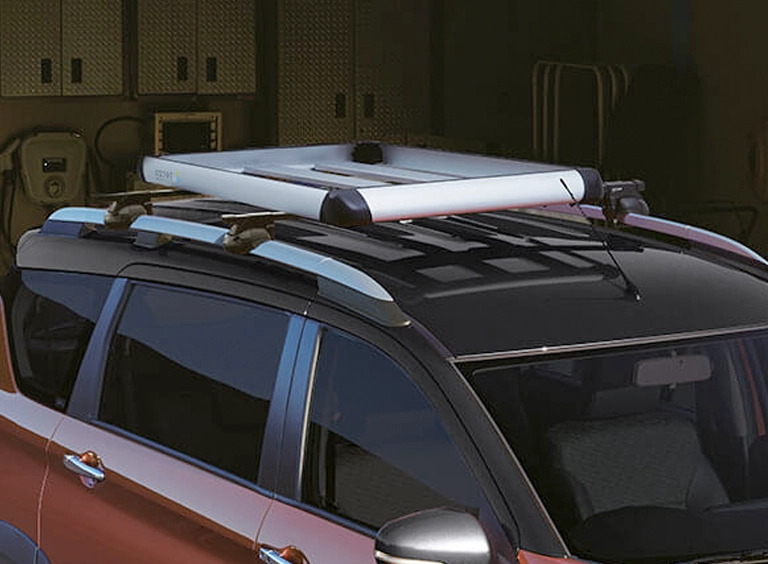 Rieles de carga totalmente funcionales que soportan hasta 45 kilogramos. La canastilla porta equipajes se vende como accesorio.
